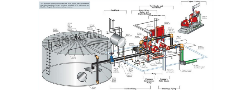Las redes contra incendio a base de agua son sistemas presurizados que distribuyen agua mediante bombas y tuberías hacia rociadores, hidrantes y monitores para la extinción de incendios. Su diseño hidráulico y operación deben cumplir las normas NFPA 13 (sistemas de rociadores), NFPA 20 (bombas contra incendios) y, en Colombia, la NTC 1669. Estas normativas establecen criterios de caudal, presión mínima (usualmente 7 bar en rociadores), reservas de agua y disposición de tomas para bomberos, asegurando una respuesta eficaz y confiable. El mantenimiento y pruebas periódicas garantizan la disponibilidad operativa en emergencias.